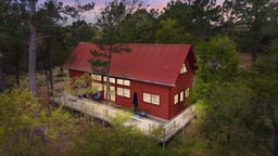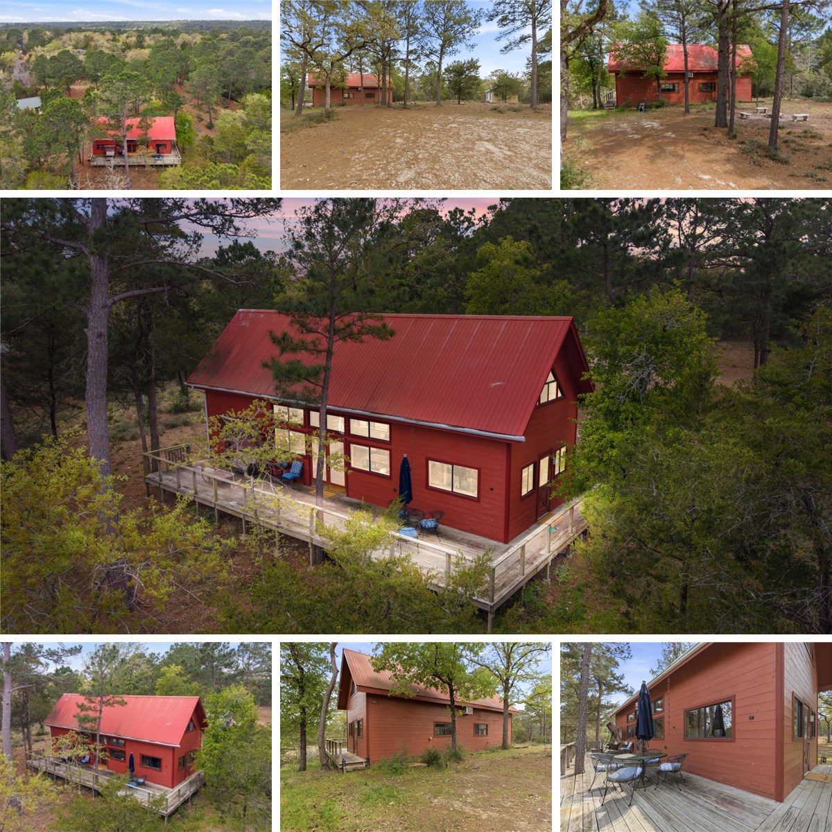 Set among towering pines, this property offers a private, peaceful setting that’s hard to replicate. Large windows bring in natural light and views of the surrounding landscape, while the expansive wraparound deck extends the living space outdoors and creates an easy place to relax and take it all in. Inside, warm wood finishes, vaulted ceilings, and an open living area give the home a comfortable cabin feel without sacrificing function. The flexible layout can live as one, two, or three bedrooms, with a loft area that adds additional space for a variety of uses. The kitchen includes updated appliances, and recent improvements include a new air conditioner, tiled shower with rainfall shower head, and ongoing exterior work to clear and maintain the property. Beyond the main home, a separate approximately 384 square foot structure provides additional space for a studio, workshop, or creative use, with electricity available but not currently connected, allowing the next owner to complete it as needed. The five acre tract offers a mix of wooded privacy and usable land, along with a recently added driveway, parking pad, and carport. Overlooking seasonal Lake Foster and surrounded by nature and wildlife, the setting offers a true sense of retreat while still being a reasonable drive into town. A property that works as a full time residence or a weekend escape with space, character, and flexibility.