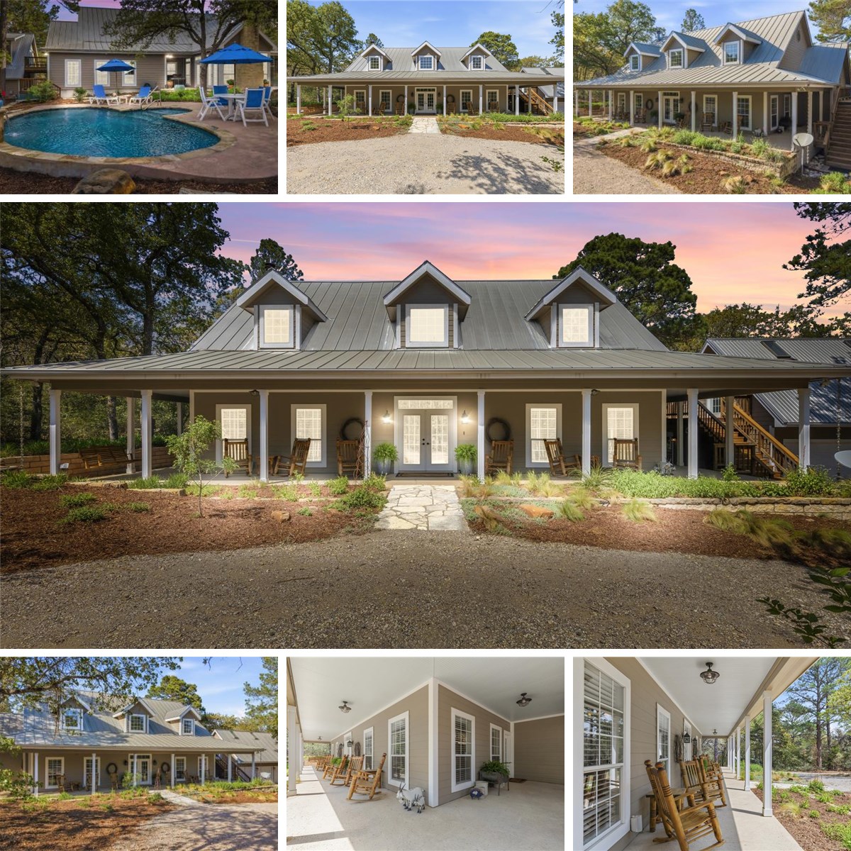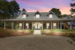A gorgeous country home set on a beautifully maintained property, where architectural detail and well-planned spaces set it apart. At the center of the home, the kitchen features hickory cabinetry, marble countertops, a butcher block island, and KitchenAid professional series appliances, including a six-burner gas cooktop with griddle and double ovens. Just off the kitchen, an expanded living area includes wood-beamed ceilings, a gas fireplace, and French doors that open to the outdoors, along with access to a screened sun porch. The main living room offers soaring ceilings, built-ins, and a second gas fireplace. The primary suite is designed for comfort, featuring a walk-in steam shower, double vanities, and dual toilets. Above the three-car garage, a detached 548 square foot guest suite offers an additional bedroom, bathroom, living room and office nook with wood and tile flooring. Outdoor living takes center stage, with over 1,400 square feet of well-designed space, exceptional landscaping, and custom hardscape. The covered outdoor kitchen includes a Santa Maria-style Argentine grill, surrounded by detailed stonework that blends naturally into the setting. A separate patio features a built-in wood-burning oven, a fire pit, and a wraparound porch. A sparkling saltwater pool with heater and waterfall is set into the landscape, creating a private setting for relaxing or entertaining, with a pool house that complements the overall design. Throughout the property, details stand out in subtle ways, including petrified wood accents, custom inlays, terraced beds, and repurposed rock columns. The wooded acreage includes established trails and carries a wildlife exemption, supporting reduced property taxes while maintaining the natural setting. Everything about this home and property has been well thought out, well designed, and well cared for, from the interior spaces to the outdoor living areas and trails that run throughout.